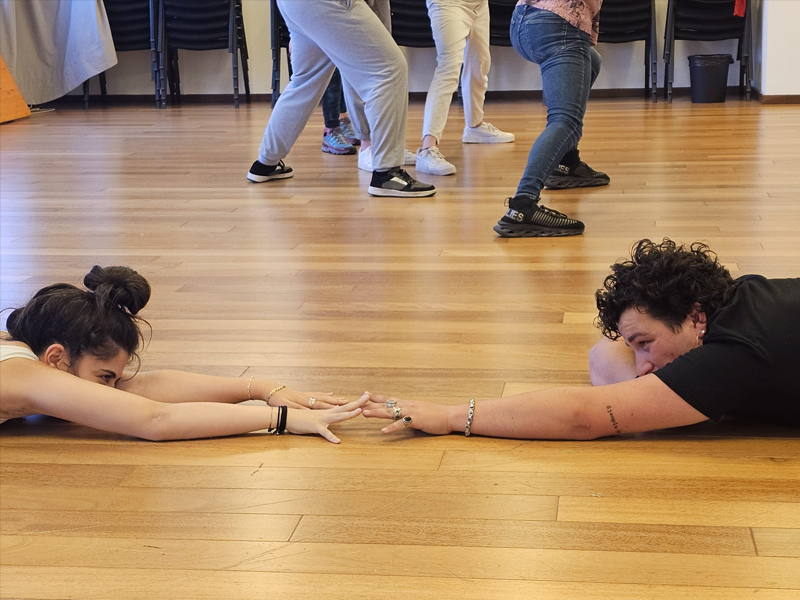Partim de la presència i l’escolta activa per explorar l’escena amb el cos com a principal mitjà d’expressió. El moviment no acompanya ni decora, sinó que construeix significat i estructura on l’acció física esdevé llenguatge.